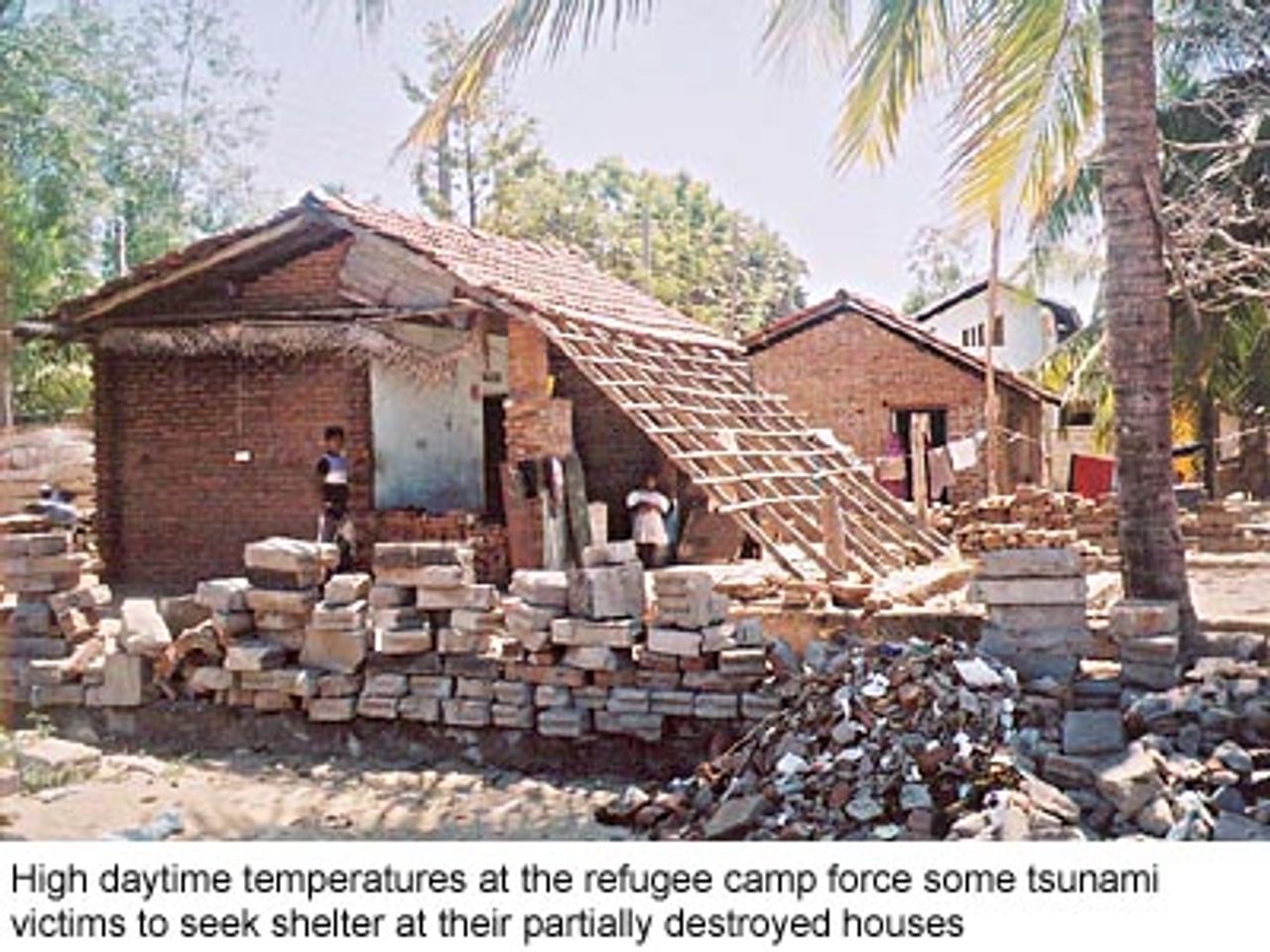 Because of the living conditions in refugee camps, some tsunami victims have returned to their damaged homes, even though they are within the government’s 200-metre buffer zone.