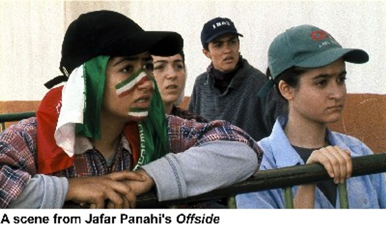 Inspired by the occasion when his daughter was refused entry to a football stadium, Iranian director Jafar Panahi’s Offside follows six girls who try to sneak into the Iran-Bahrain World Cup qualifying match in Tehran. They are obliged to “sneak in” because females in Iran are forbidden to watch live football, on the grounds of its corrupting influence—bad language from fans, half-naked athletes, etc. One by one the girls are caught, despite, in many cases, ingenious disguises (one has appropriated a military officer’s uniform).