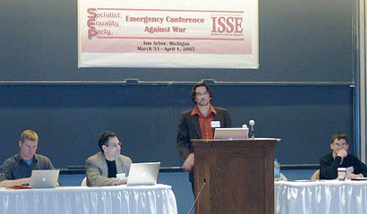 The International Students for Social Equality (ISSE)/Socialist Equality Party (SEP) Emergency Conference Against War voted unanimously April 1 for a resolution advancing a socialist and internationalist program to oppose militarism and war. The two-day conference was convened to develop a program for the mobilization of student youth and the working class as a whole within the United States and internationally to halt the war in Iraq and prevent the outbreak of war against Iran.