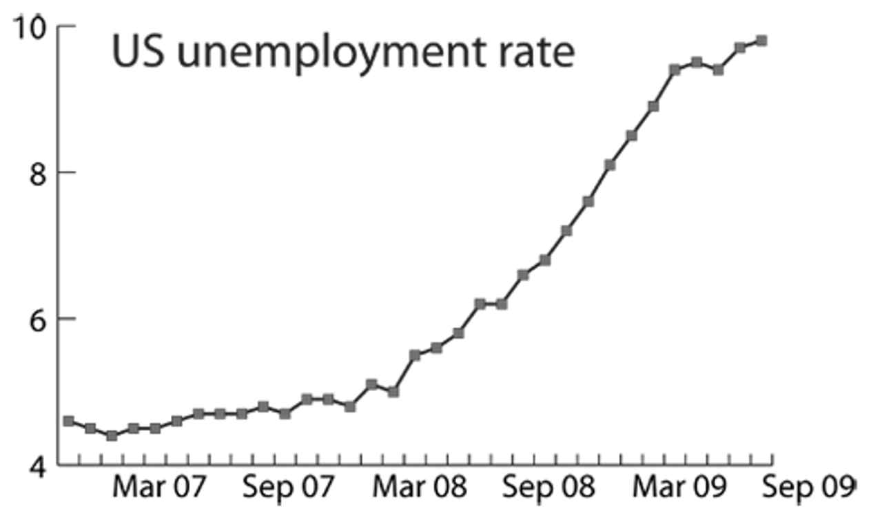 The US unemployment rate reached 9.8 percent and the economy lost 263,000 jobs in September, according to figures released Friday by the Labor Department. The latest figures undermine claims of an imminent economic recovery and point to the likelihood that the US economy will remain mired in recession for the foreseeable future.