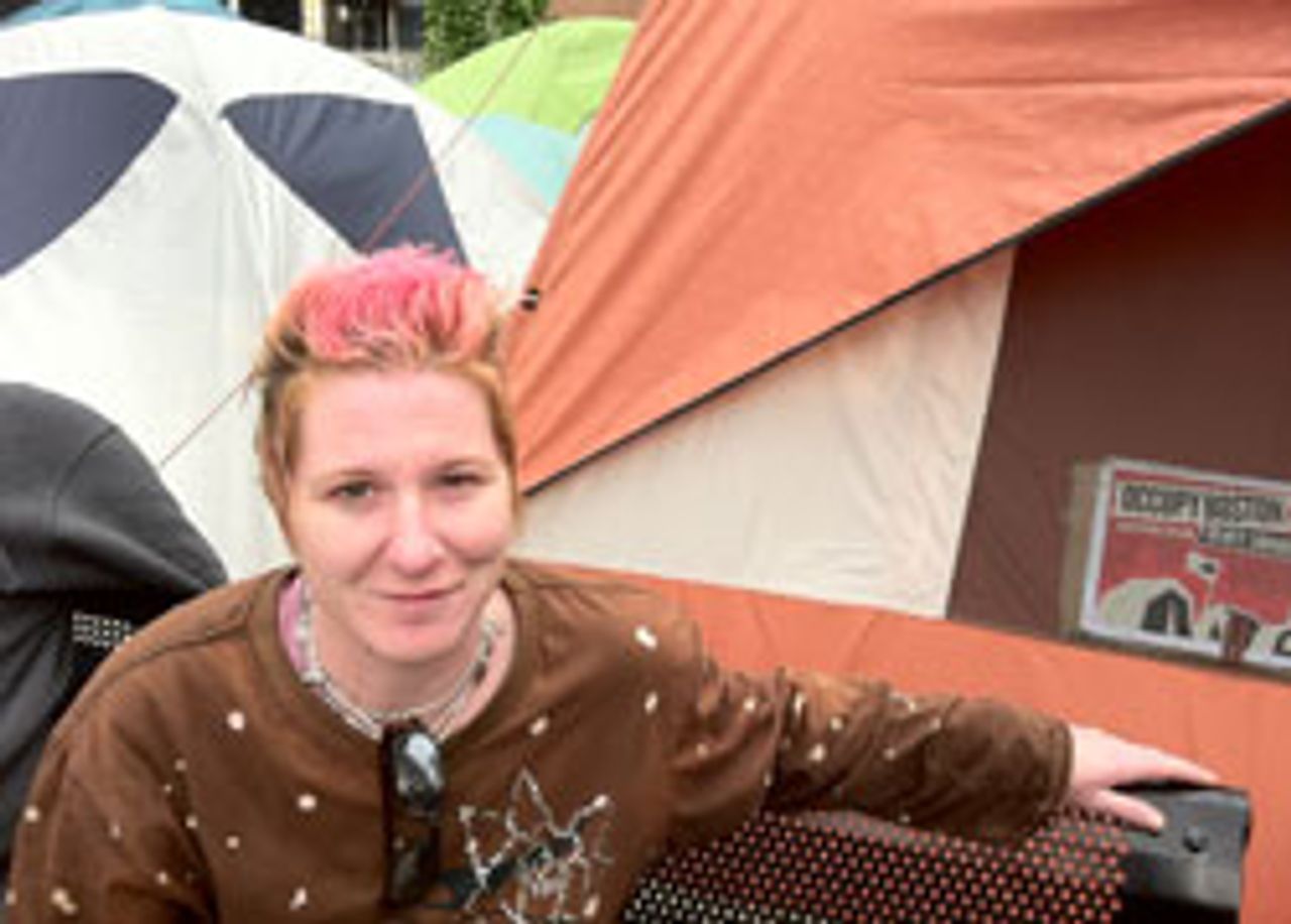 Diane Reynolds has been coming into Dewey Square regularly from the working class city of Peabody, about 18 miles north of Boston. She’s angry about the housing crisis, and concerned that she might not be able to pay for her children’s future college education.