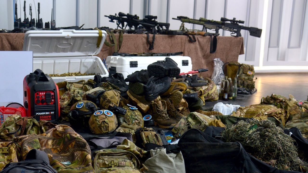 As autoridades apreenderam fuzis de assalto, 134 carregadores com 12.846 munições (5,56x45 mm e 7,62 mm para fuzis AKM), pistolas capazes de perfurar coletes à prova de balas, um drone com duas câmeras, 10 dispositivos de comunicação, facas táticas, um gerador portátil, alicates de corte, uniformes camuflados e emblemas do grupo fascista de exilados “Autodefesa Popular”. Os agressores viajaram em duas embarcações, até que uma delas apresentou problemas durante a viagem.