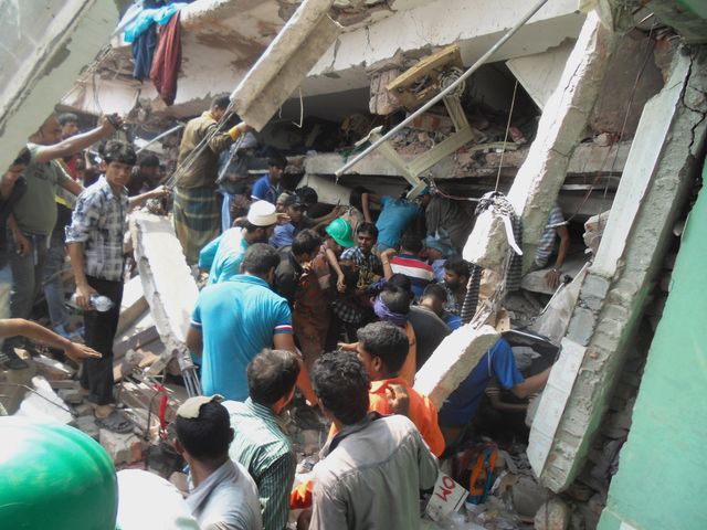බංග්ලාදේශ ඉතිහාසයේ දරුනුම කාර්මික ව්‍යසනයන්ගෙන් එකක් වන ඩකා අගනුවරට සමීප සැවාහි තට්ටු අටක ගොඩනැගිල්ලක් කඩා වැටීමෙන් එහි පවත්වාගෙන ගිය ඇඟලුම් කම්හල්වල කම්කරුවන් 25 දා උදෑසන වන විට අඩුම තරමින් 149ක් මියගොස් 1,000 පමන තුවාල ලබා ඇති බව තහවුරුවී ඇත. තවත් 1,600ක් තරම් සංඛ්‍යාවක් සුන්බුන් තුල අතර සිරවී ඇතැයි සැලකේ.