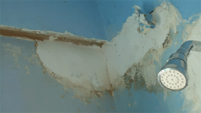 වැසි ජලය කාන්දු වීමෙන් අබලන් වූ බිත්තියක්