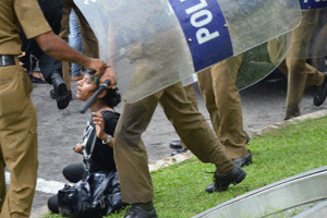 කුලු පොලු සහිතව සිටි 200 කට අධික පොලිස් භටයන්ගෙන් හා ජල විදින යන්ත‍්‍රයන්ගෙන් සන්නද්ධව සිටි පොලිස් කැරලි මර්දන ඒකකය මාර්ග බාධක යොදා සිසුන් අමාත්‍යංශයට ඇතුලුවීම වලකාගෙන සිටි අතර සිසුන් වෙතට පැමිනි ඉහල පොලිස් නිලධාරියෙක් ඇමතිවරයා හමුවීමට නොහැකිබව පවසමින් වහා විසිර යන ලෙස සිසුන්ට විධානය කලේය. එය ප‍්‍රතික්ෂේප කල සිසුන් මාර්ග බාධකය ඉවත් කිරීමට යත්න දරනවාත් සමගම කඳුලු ගෑස් සහ ජල ප‍්‍රහාර එල්ල කරමින් පොලිස් ප‍්‍රහාරය ආරම්භ විය. ප‍්‍රහාරයෙන් ආරක්ෂාවීම සඳහා දිවගිය සිසුන් හඹා ගිය පොලීසිය ඔවුනට කුරිරු ලෙස පහර දුන්නේ ස්ත‍්‍රී පුරුෂ භේදයක් නොතකාය. පහර කෑ බිම වැටී සිටි සිසුවියන්ට ද පහර දුන් පොලීසිය ඔවුන් බිමදිගේ ඇදගෙන ගොස් පොලිස් ට‍්‍රක් රථ වලට නංවා ගත්හ. ප‍්‍රහාරයෙන් තුවාල ලද සිසුන් 6 දෙනකු රෝහල් ගත කෙරුනු අතර සිසුන් 39 දෙනෙකු පොලිස් අත්අඩංගුවට ගැනින.