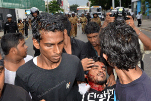 පොලිස් ප්‍රහාරයෙන් ඔලුව පැලුන සිසුවෙක් /ඡායාරූප අනුග්‍රහය: ෂෙහාන් ගුනසේකර