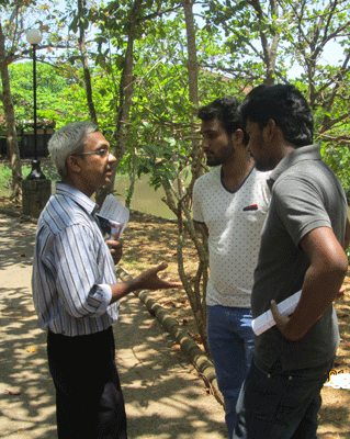 දෙවන වසරේ සිසුන් දෙදෙනෙකු සමඟ සාකච්ඡා කරන සසප සාමාජිකයෙක්