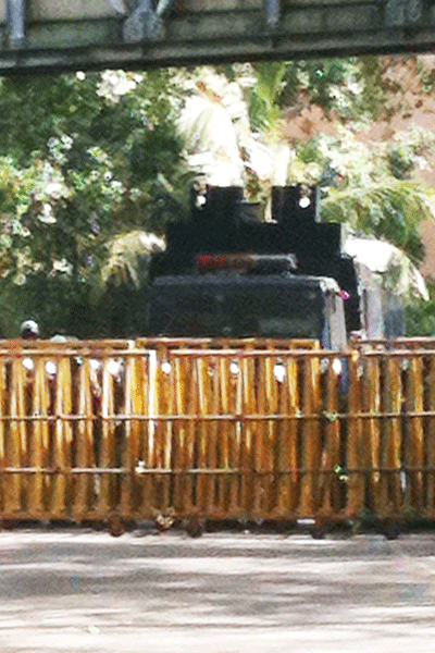 පොලිස් විශේෂ කාර්ය බලකාය ලෝටස් පාර හරහා මාර්ග බාධක යොදා ජල විදින යන්ත‍්‍රය ද සහිත ප‍්‍රහාරය සැලසුම් කර තිබූ අයරු