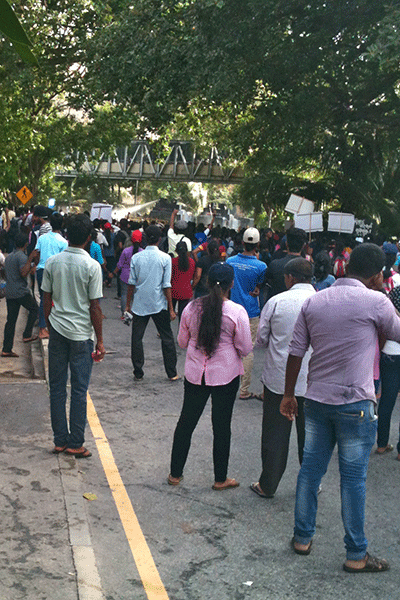 අන්තර් විශ්ව විද්‍යාල ශිෂ්‍ය බල මන්ඩලයේ (අවිශිබම) නායකත්වය යටතේ මරදාන ටෙක්නිකල් හන්දියෙන් ඇරඹූ පා ගමන කොටුව දුම්රිය ස්ථානය ඉදිරියෙන් ගමන් කොට ලෝටස් පාර හරහා ජනාධිපති ලේකම් කාර්යාලයට ලඟා වෙමින් සිටියදී මාර්ග බාධක යොදා මග අවහිර කල පොලීසිය සිසුන්ට විසිර යන ලෙස නියෝග කලේය.