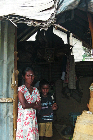 එම ප‍්‍රදේශයේ අඩක් වැඩ නිමවා තිබූ කුඩා නිවාස කිහිපයක් ද සෙවිලි තහඩු කිහිපයකින් පමනක් ආවරනය කර තිබුනු කූඩාරම් වැනි නිවාස රාශියක් ද දක්නට ලැබුනි. එම කූඩාරමක වෙසෙන කාන්තාවක් සමඟ කල සාකච්ඡාවකදී යුද්ධය විසින් සාමන්‍ය ජනජීවිත වනසා දමා තිබෙන ආකාරය පිලිබඳ කම්පා සහගත වාර්තාවක් සැපයින. “අපි කලින් අපේ ගම්බිම් වල ගොවිතැන් කරගෙන හිටියා. යුද්දෙන් අපේ ගෙවල් දොරවල් ගොවිතැන් විනාස වුනාට පස්සේ අපි සරනාගත කඳවුරු වලට මාරු වෙවී හිටියා. අවුරුදු පහකට පමන පෙර තමයි මෙහෙට ආවේ. මගේ සැමියා කරන්නේ මේ ඉදිකෙරීගෙන යන ගෙවල් වල අයිතිකාරයින්ගේ හරක් බලාගන්න එක. මේ ගෙවල් දීලා තියෙන්නේ කරුනාගේ (විනයාගමූර්ති මුරලිදරන්) හිතවතුන්ට.”