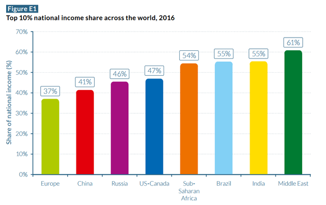 බ‍්‍රහස්පතින්දා, තෝමස් පිකටි, එමානුවල් සයස් සහ ගේබ්‍රියල් සුක්මන් ඇතුලත් අසමානතාවය පිලිබඳ ප‍්‍රමුඛ පරීක්ෂකයන්ගේ කන්ඩායමක්, බටහිර යුරෝපයේ අනෙකුත් සංවර්ධිත රටවලට වඩා මෙන්ම ලෝකයේ අනෙකුත් තැන් වලින් බොහොමයකට වඩා එක්සත් ජනපදය බොහෝ සෙයින්ම අසමානතාවෙන් යුක්ත බව පෙන්නුම් කරන තම 2018 ලෝක අසමානතාවය පිලිබඳ වාර්තාව ඉදිරිපත් කලේය.
