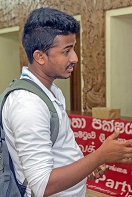උද්ඝෝෂකයෝ ව්යාජ-වාම පෙරටුගාමී සමාජවාදී පක්ෂය විසින් මෙහෙයවනු ලබන පේරාදෙනිය විශ්විද්යාලයේ ශිෂ්ය සංගම් සාමාජිකයින්ගේ ප්රජාතන්ත්ර විරෝධී තර්ජන වලට අභියෝග කරමින් උද්ඝෝෂනයේ නියලුනහ. ශිෂ්ය සංගම් නායකයින් ප්රකාශ කලේ රැස්වීම ප්රචාරය කිරීමට උද්ඝෝෂකයින් ඔවුන්ගේ අවසරය ගැනීම අවශ්ය බව යි.