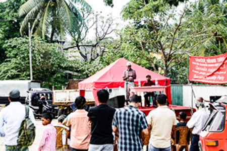 රැස්වීම ඇමතූ සසප දේශපාලන මන්ඩල සාමාජික පානි විජේසිරිවර්ධන, කම්කරුවන හා දුගීන් මුහුන දී ඇති ප‍්‍රශ්න වලට හේතුව ධනපති ක‍්‍රමයේ ඇති වී තිබෙන ලෝක පරිමාන අර්බුදය බවත් ව්‍යාජ-වාම කන්ඩායම් ඇතුලු ධනපති පක්ෂ මෙය කම්කරු පන්තියෙන් වහංගු කිරීමට උත්සාහ කරන බවත් පෙන්වා දෙමින් කතා කලේ ය. “මැතිවරනය තුල අනෙකුත් පක්ෂවල ප‍්‍රධාන තේමාව ‘දූෂන විරෝධී’ සටනයි. එහි ප‍්‍රධාන තැනක් ගෙන තිබෙන ධනපති සංස්ථාපිතයේ පක්ෂයක් වන ජනතා විමුක්ති පෙරමුන (ජවිපෙ) කියන්නේ දූෂනය නැති කිරීමෙන් ධනපති ක‍්‍රමය තුල ප‍්‍රශ්න විසඳා ගත හැකි බවයි. ධනවාදය රටක් රටක් පාසා පෙරලා දමා ජාත්‍යන්තර සමාජවාදය තහවුරු කිරීමකින් තොරව මහජනයාගේ එකදු සමාජ අයිතියක් දිනා ගැනීමට හා ලෝක යුද අන්තරාය නවතා ගත නොහැකියි” විජේසිරිවර්ධන ප‍්‍රකාශ කර සිටියේ ය.