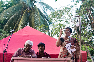 දකුනු ආසියාවේද ජාත්‍යන්තරවද සමාජවාදී සමූහාන්ඩු සංගමයක කොටසක් ලෙස ශ‍්‍රී ලංකා හා ඊලම් සමාජවාදී සමූහාන්ඩුවක් කම්කරුන්ගේ හා ගොවියන්ගේ ආන්ඩුවක ස්වරූපයෙන් ගොඩ නැගීමෙන් පමනක් කම්කරුවන් හා පීඩිතය මුහුනදී ඇති ප‍්‍රශ්න විසඳිය හැකි බව ඇය අවධාරනය කලාය. මෙම වැඩපිලිවල යටතේ කම්කරුවන් ක‍්‍රියාකාරී කමිටු ගොඩනගා ගැනීම සඳහා ඉදිරියට පැමිනිය යුතු බව ඇය කියා සිටියා ය.