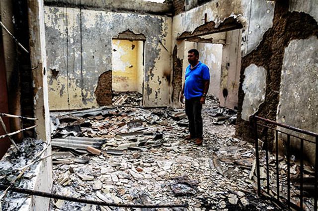 මැරයන් විසින් හානි කල මුස්ලිම් පල්ලියක්