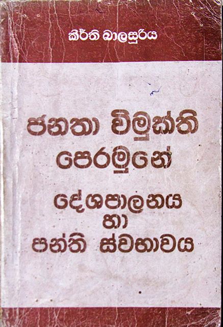 සිය පොත තුල බාලසූරිය මෙසේ පැහැදිලි කරයි: “කස්ත්‍රෝ, ගුවාරා හා මාඕ මෙන්ම ජවිපෙ ද කම්කරු පන්තියට ඓන්ද්‍රීය ලෙස සතුරු වන අතර, ප්‍රතිගාමී ජාතිකවාදය තුල මුල් බැස ඇත. ජවිපෙහි විකෘත පාරිභාෂිකය තුල ‘නිර්ධන පන්තිය‘ ලෙස හඳුන්වනු ලබන්නේ ගොවි ජනයාගේ පීඩිත ස්ථරයන්ය. කම්කරුවන්ගේ ආර්ථික සටන් අධිරාජ්‍යවාදයට එරෙහි ‘දේශප්‍රේමී’ අරගල කෙරෙන් ඉවතට යොමු කෙරෙන ‘කැඳ කෝප්ප අරගල’ ලෙස බාල්දු කිරීමට එම සංවිධානය කටයුතු කලේය. කස්ත්‍රෝගේ ආදර්ශයෙහි පිහිටමින් ජවිපෙ නිවේදනය කලේ ‘දේශප්‍රේමින් කන්ඩායමක් විසින් කරලියට ගෙන එනු ලබන නැඟිටීමකින් පාලක පන්තියේ බලයට වල කැපිය හැකි බවයි.’ ”