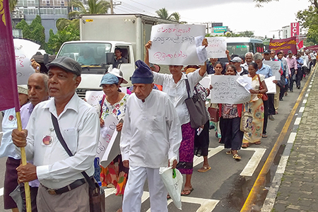 පා ගමනකින් පාර්ලිමේන්තු වට රවුම වෙත පැමිනි විශ්‍රාමිකයෝ ඉහත ඉල්ලීම් සහිත සටන් පුවරු ප්‍රදර්ශනය කරමින් පැය තුනකට අධික කාලයක් උද්ඝෝෂනයේ නිරත වූහ. පා ගමන හා විරෝධතාවය සංවිධානය කර තිබුනේ සමස්ත ලංකා රජයේ විශ්‍රාමිකයින්ගේ ඒකාබද්ධ සංවිධානය (සලංරවිඒස) මගිනි.