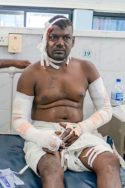 “මගේ බිරිඳ ඇදගෙන වැටුන. ඇයට ඔලුවේ තුවාල තියන නිසා 38 වාට්ටුවට දැම්ම. අවුරුදු 10 ක් වන මගේ පුතාත් පල්ලියෙ ඇතුලෙ හිටියෙ, ඒත් වාසනාවට කෙස් පිච්චිලා විතරයි. අපිට නිශ්චිත මාසික ආදායමක් නැහැ ඒත් දවස ම වැඩ කරල රුපියල් 2,000ක් විතර හොයා ගන්නව. මේ ආදායමෙන් මම හය දෙනෙකුට කන්න දෙන්න ඕන. මේ සිද්දිය අපට එල්ල වෙච්ච ලොකු ප්‍රහාරයක්.”
