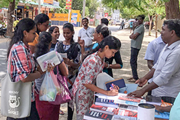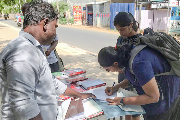 පෙත්සමට අත්සන් තබන ශිෂ්‍ය කන්ඩායමක්