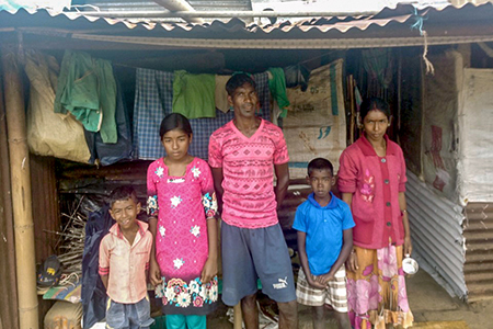 ගින්නෙන් විනාශ වූ නිවාසයක පවුලේ සාමාජිකයින්