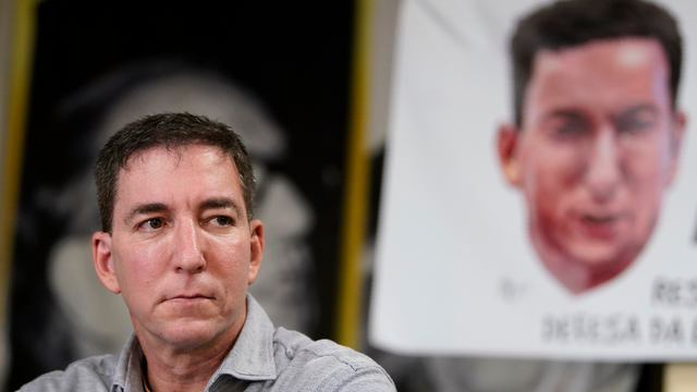 මාධ්‍යවේදී ග්ලෙන් ග්‍රීන්වෝල්ඩ් මාධ්‍ය හමුවකදී ප්‍රශ්නයකට සවන් දෙයි [අනුග්‍රහය: ඒපී ඡායාරූපය / රිකාඩෝ බෝර්ජස්]