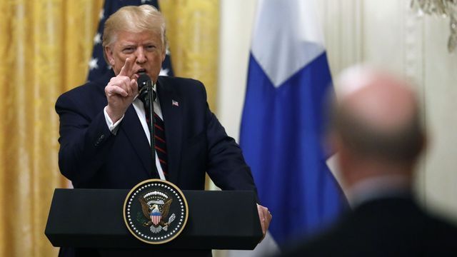 ඔක්තෝබරයේ වොෂින්ටනයේ ධවල මන්දිරයේ දී ෆින්ලන්ත ජනාධිපති සවුලි නීනිස්ටෝ සමග පැවැත් වූ මාධ්‍ය සාකච්ඡාවක දී කතා කරමින් සිටින ඩොනල්ඩ් ට්‍රම්ප් [Credit: AP Photo/Carolyn Kaster]