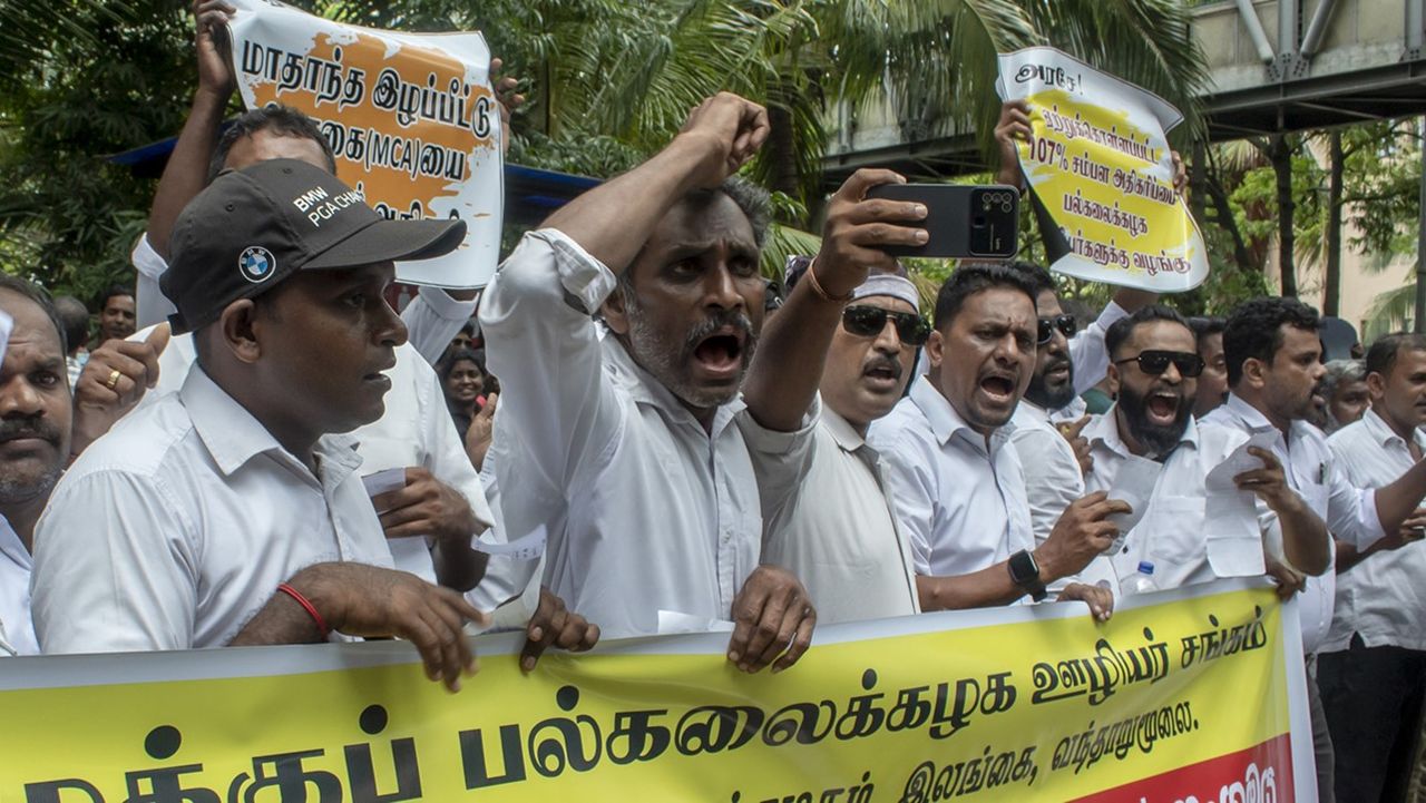 சம்பள அதிகரிப்பைக் கோரி இலங்கையில் ஆயிரக்கணக்கான பல்கலைக்கழக ஊழியர்கள் போராட்டம் நடத்தினர்